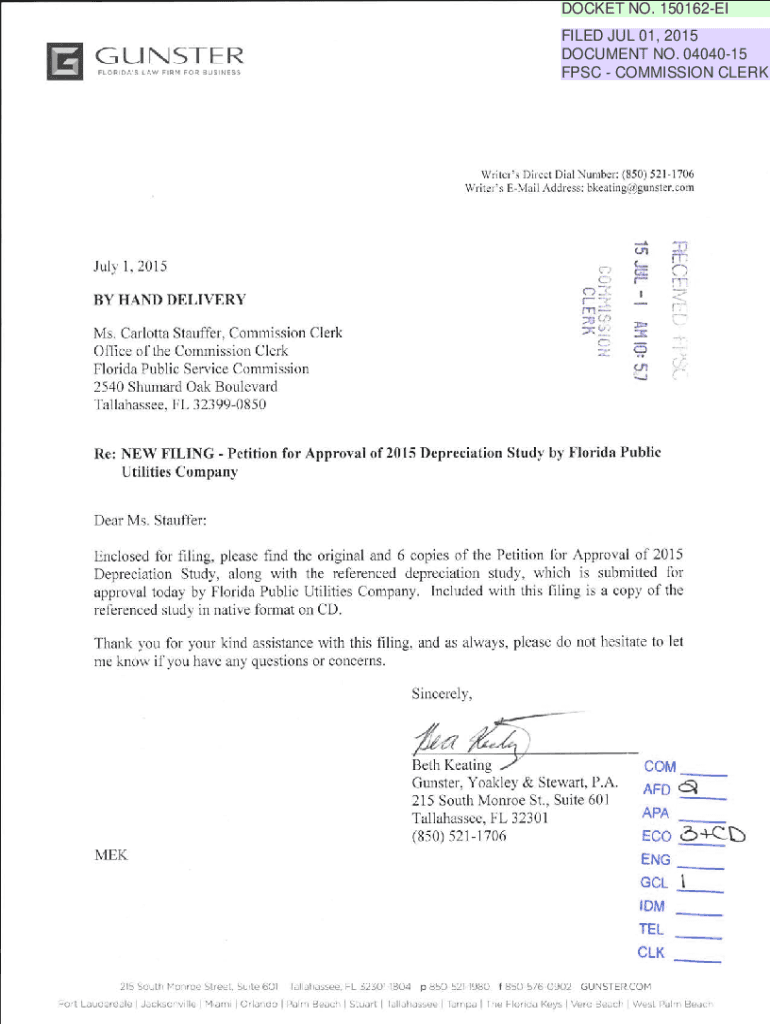 Get the free NEW FILING - Petition for Approval of2015 Depreciation ...
