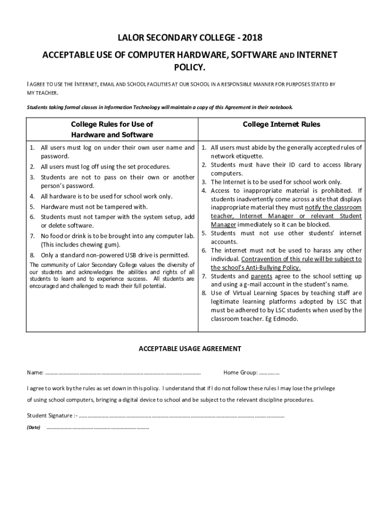 Fill out your ict and internet acceptable online with pdfFiller!