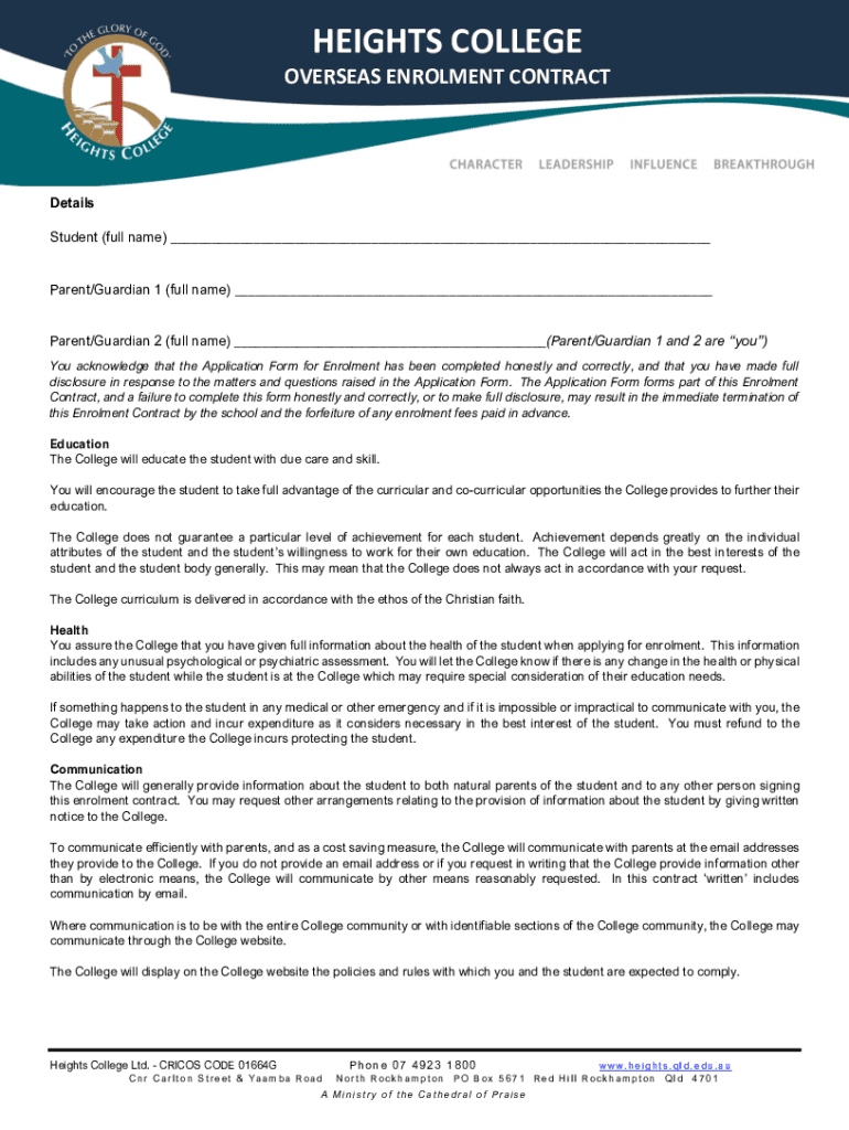 HEIGHTS COLLEGE OVERSEAS Enrollment CONTRACTDetails Student (full name) ___ Parent/Guardian 1 (full name) ___ Parent/Guardian 2 (full name) ___(Parent/Guardian 1 and 2 are you) You acknowledge that
