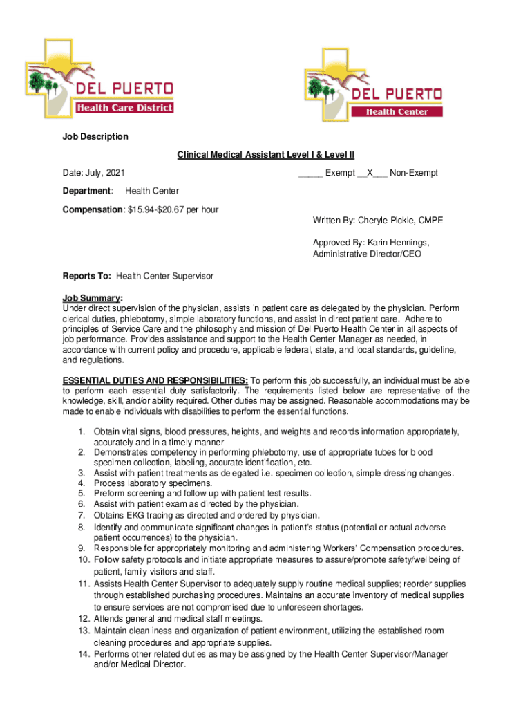 Department:___ Exempt __X___ NonExemptHealth CenterCompensation: $$15.9420.67 per hour