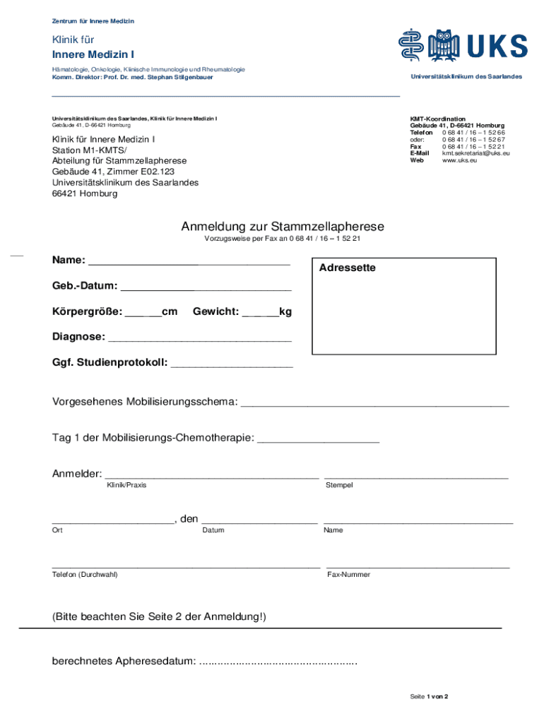 Wie fülle ich universittsklinikum des saarlandes aus?