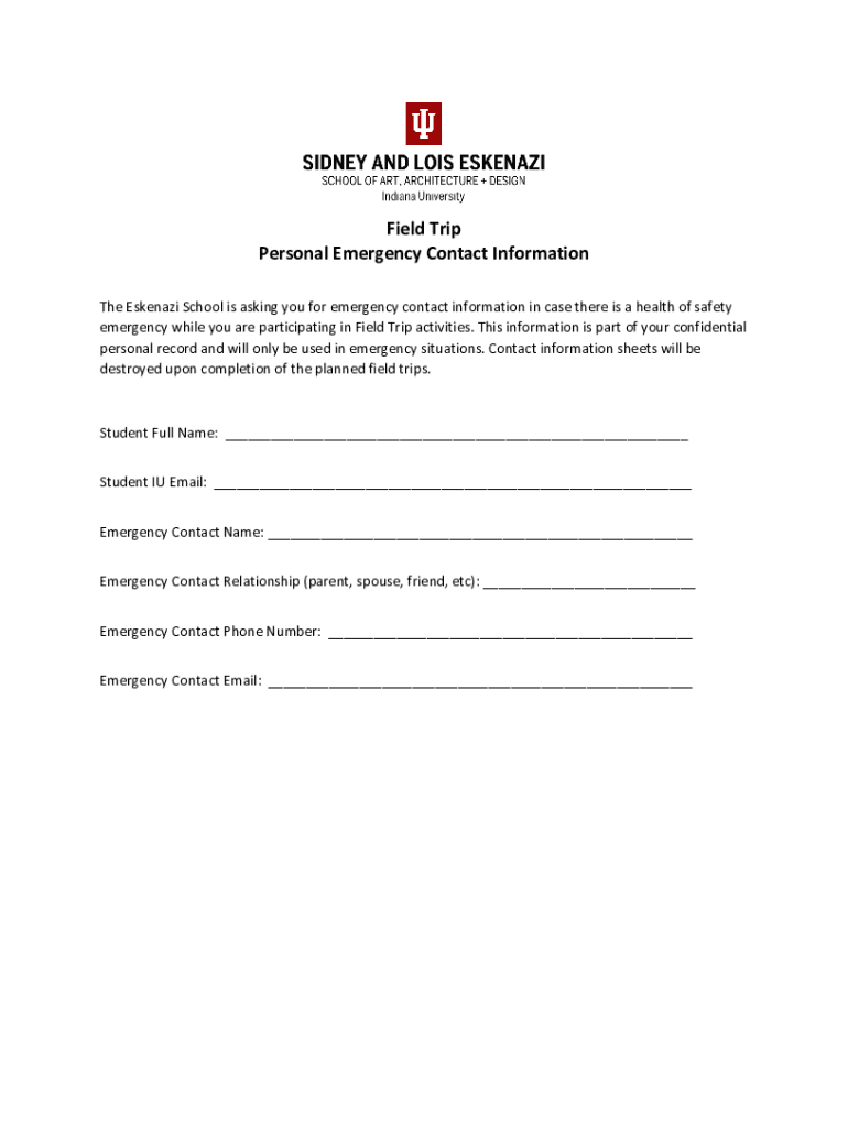 emergencywhileyouareparticipatinginFieldTripactivities. Thisinformationispartofyourconfidential