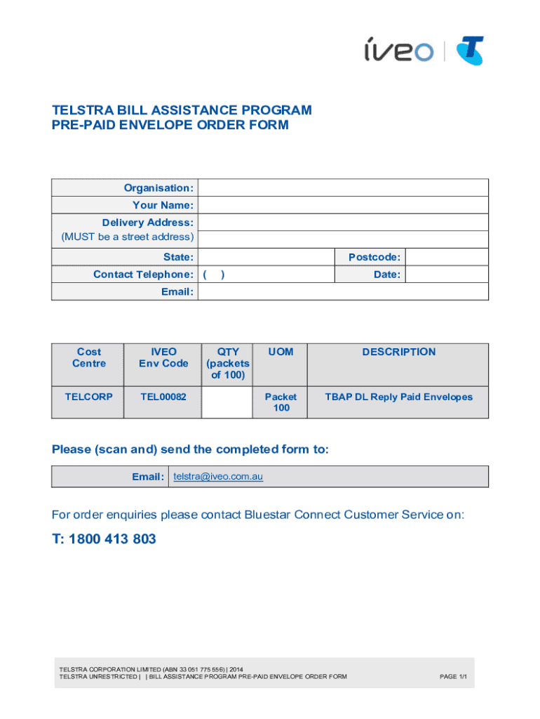 To fill out the new tel00082 tbap envelope-order-formdocx, users should provide accurate information in the designated fields, including personal and order details, ensuring all required sections are completed.
