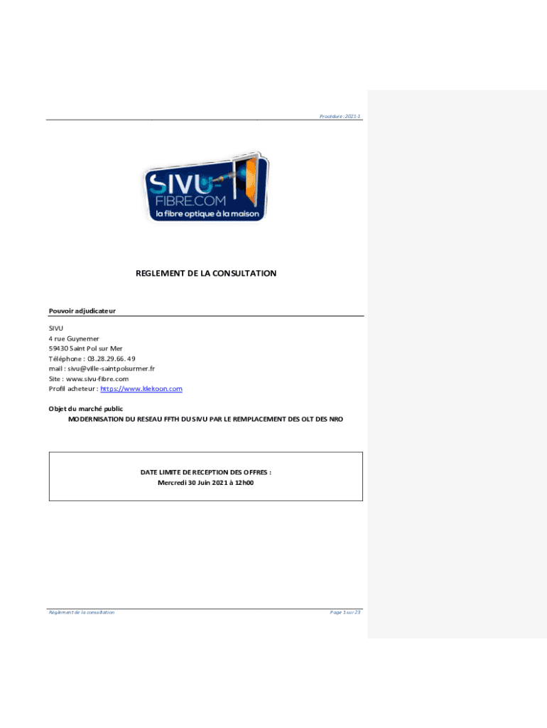Procedure :20211REGLEMENT DE LA CONSULTATIONPouvoir adjudicate