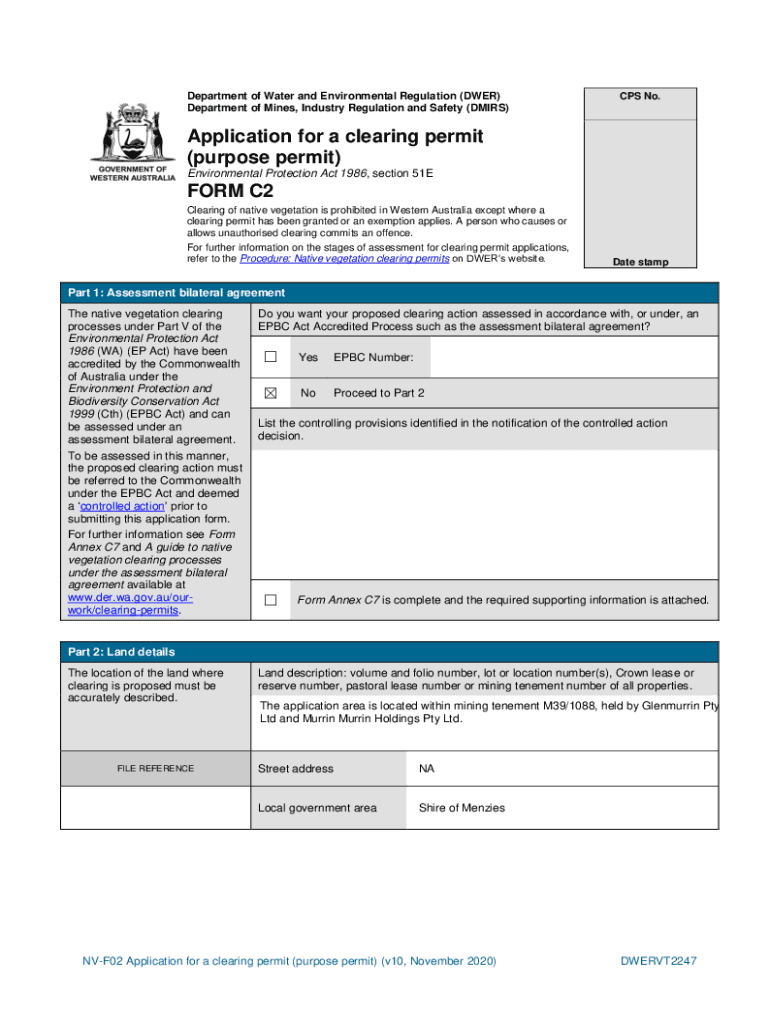 Get the free Native Vegetation New Clearing Permit Application (59698 NVCP Form C21694 - attachment)