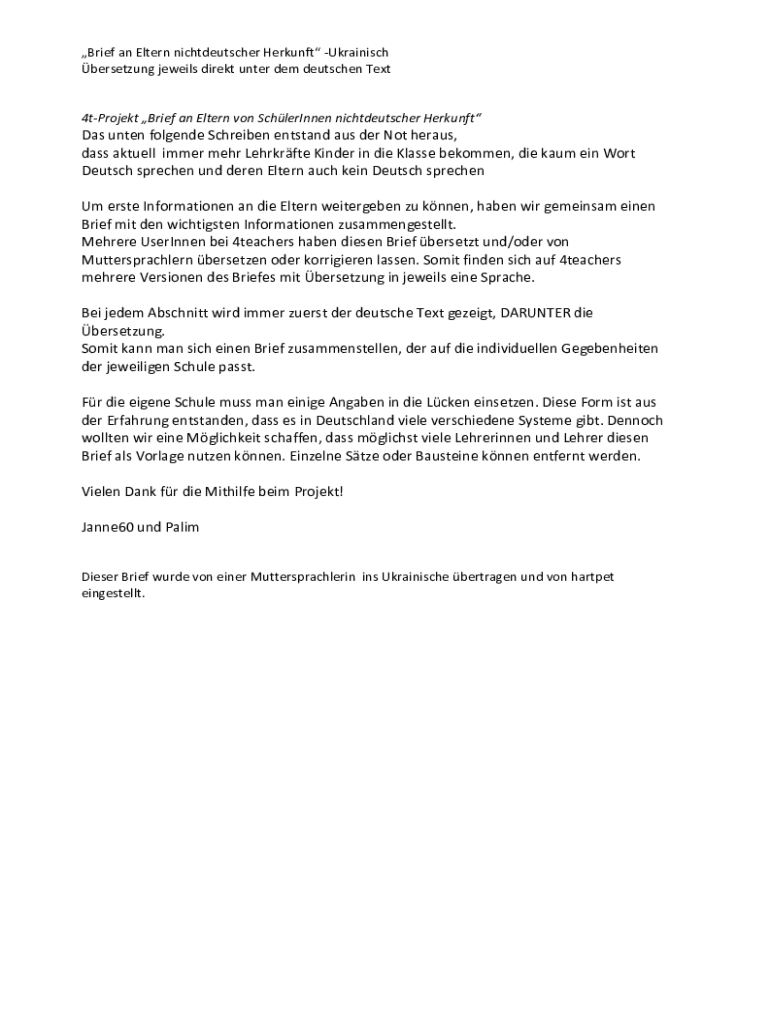 BriefanElternnichtdeutscherHerkunftUkrainisch bersetzungjeweilsdirektunterdemdeutschenText 4tProjektBriefanElternvonSchlerInnennichtdeutscherHerkunftDasuntenfolgendeSchreibenentstandausderNotheraus,