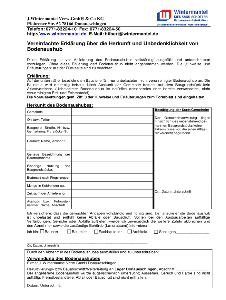 Welche Informationen müssen auf j wintermantel gmbh ampamp gemeldet werden?