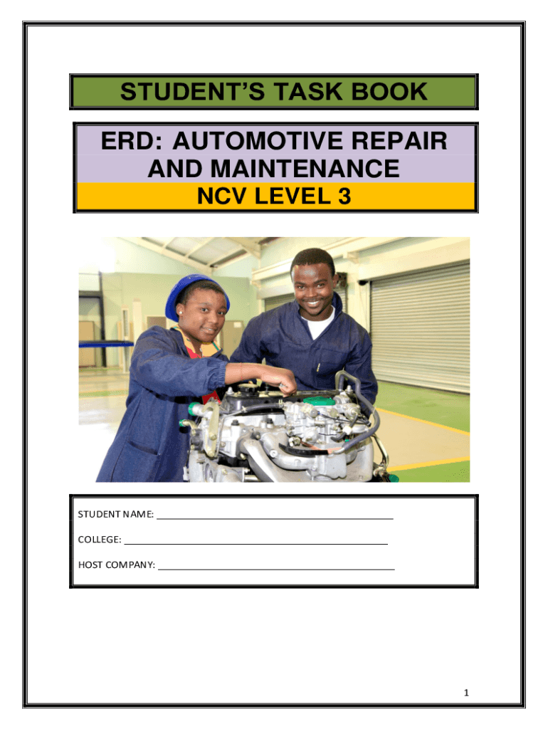 STUDENTS TASK BOOK ERD: AUTOMOTIVE REPAIR AND MAINTENANCE CV LEVEL 3STUDENT NAME: ___ COLLEGE: ___ HOST COMPANY: ___1NATIONAL CURRICULUM (VOCATIONAL)Engineering and Related Design Elective: Automotive
