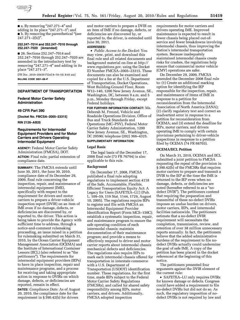 Federal Register / Vol. 75, No. 161 / Friday, August 20, 2010 / Rules and Regulations a. By removing 247.2714 and adding in its place 247.2713; and b. By removing the parenthetical (see 247.2712(b)).