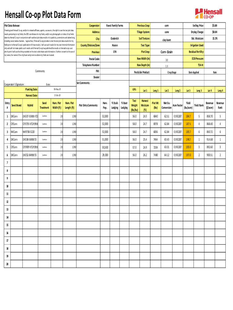 Hens all Coop Plot Data Form Plot Data Release:Cooperator:I hereby grant Hens all Coop, and/or its related affiliates, agents, successors, the right to use the test plot data results pertaining to