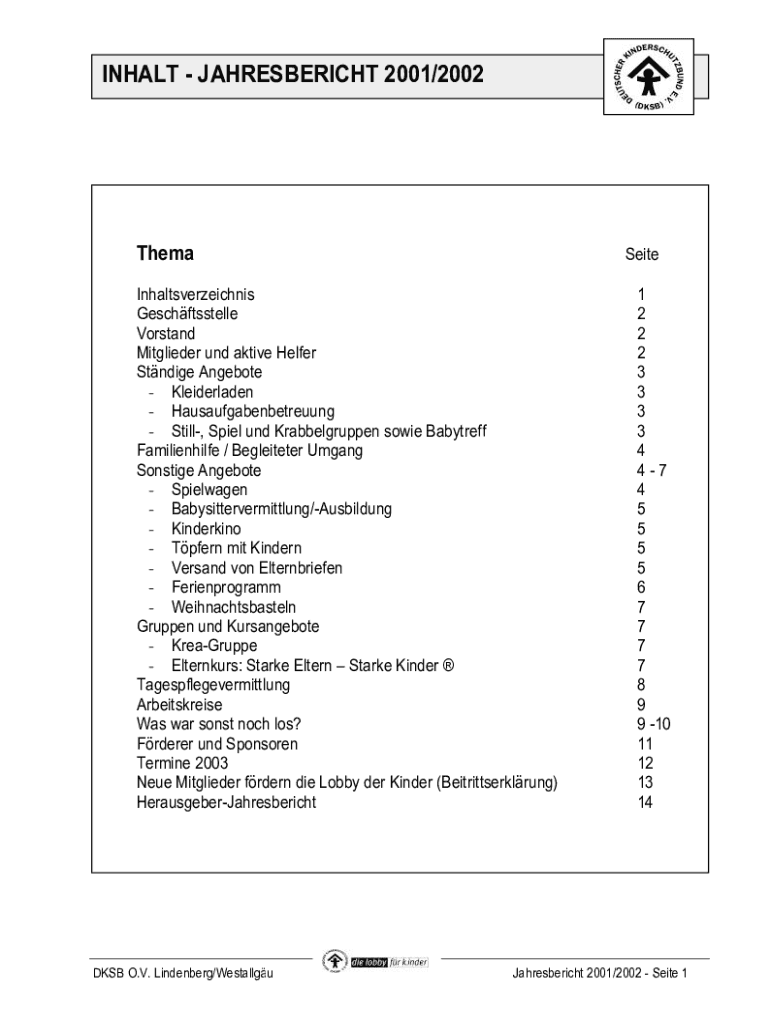 INHALE JAHRESBERICHT 2001/2002ThemaSeiteInhaltsverzeichnis
