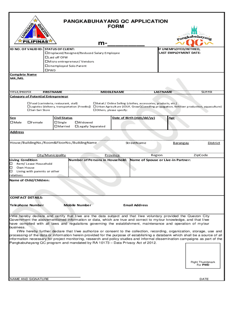 Get the free O-6065 APPLICATION FORM.pdf - PANGKABUHAYANG ...