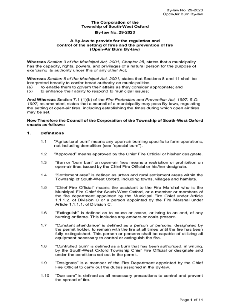 Bylaw No. 292023 OpenAI Burn Breathe Corporation of the Township of SouthWest Oxford Bylaw No. 292023 A Bylaw to provide for the regulation and control of the setting of fires and the prevention of