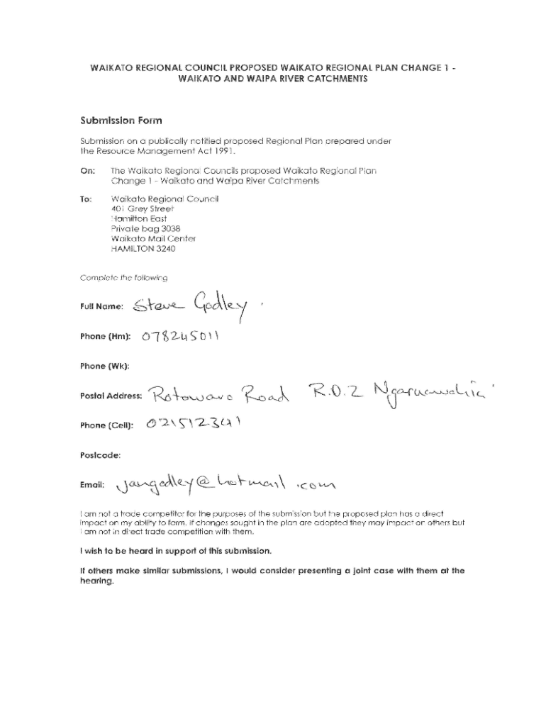 MANKATO REGIONAL COUNCIL PROPOSED MANKATO REGIONAL PLAN CHANGE 1 MANKATO AND WA IPA RIVER CATCHMENTSSubmission Form Submission on a publically notified proposed Regional Plan prepared under the Resource