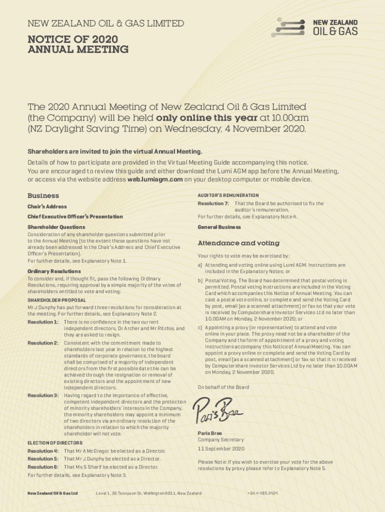 ANNUAL Meeting 2020 Annual Meeting of New Zealand Oil & Gas Limited