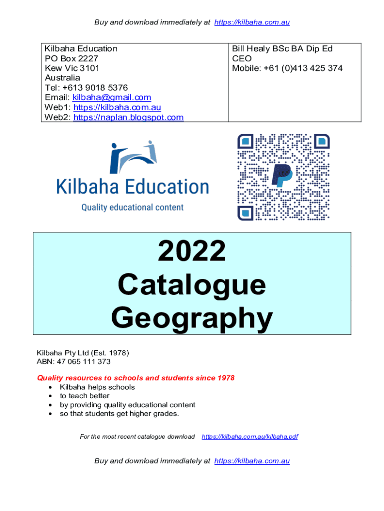 Buy and download immediately at https://kilbaha.com.auKilbaha Education PO Box 2227 New Vic 3101 Australia Tel: +613 9018 5376 Email: kilbaha@gmail.com Web1: https://kilbaha.com.au Web2: https://naplan.blogspot.comBill