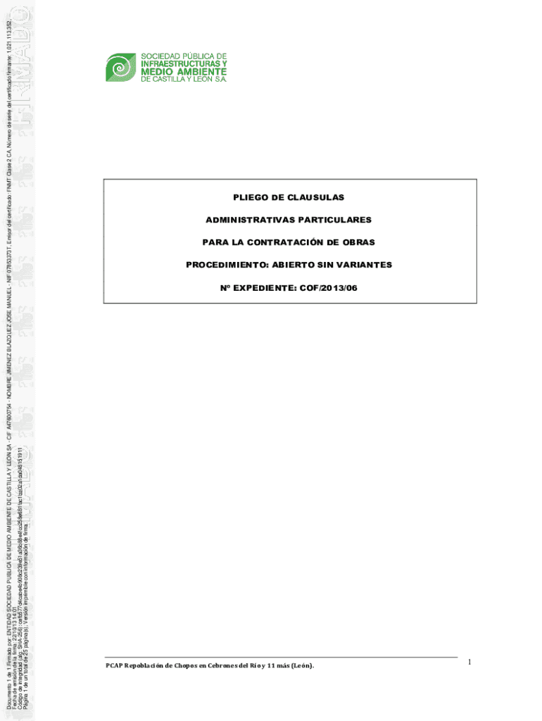 Document 1 DE 1. Firm ado POR: ENTICED SOCIETAL PUBLIC DE MEDIA AMBIENT DE CASTILLA Y LEON SA CIF A47600754 HOMBRE JIMENEZ VAZQUEZ JOSE MANUEL NIF 07853373T, Minor Del certificate: FNMA Class 2 CA,