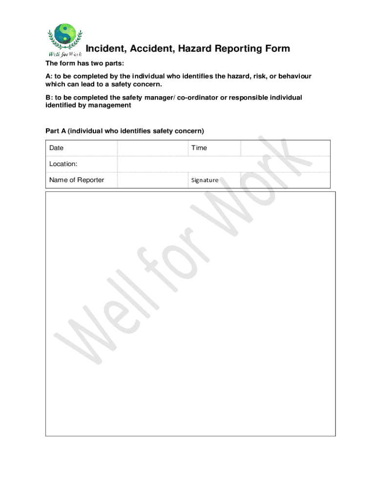 Get the free Incident, Accident, Hazard Reporting Form WELL FOR WORK