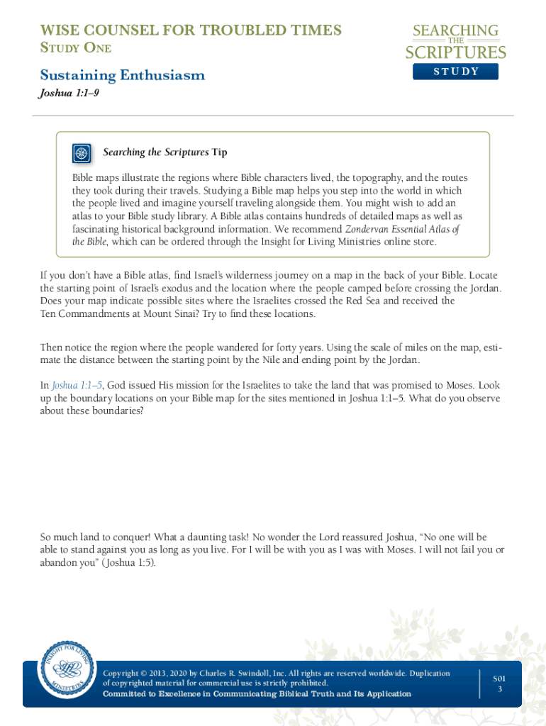 ST U DEMISE COUNSEL FOR TROUBLED TIMES Study One Sustaining Enthusiasm Joshua 1:19Overexposure to religious activities can lead to spiritual monotony. You can become weary in doing good. You can lose