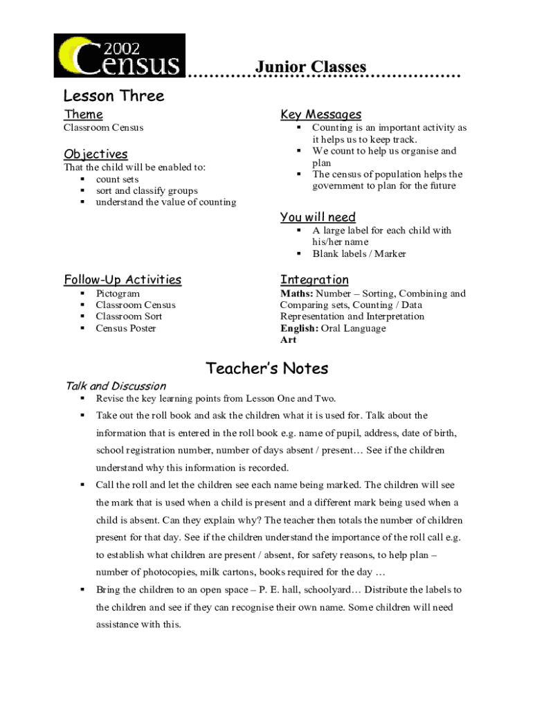 Theme Key MessagesClassroom CensusObjectivesThat the child will be enabled to: