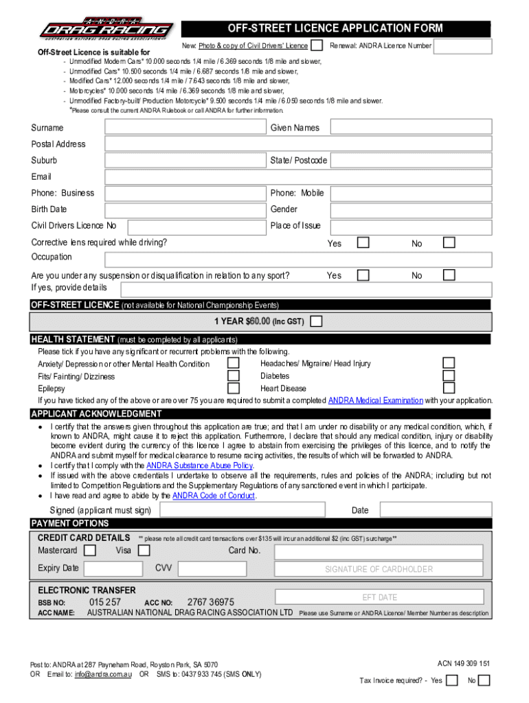 Get the free Off Street Licence Application Form