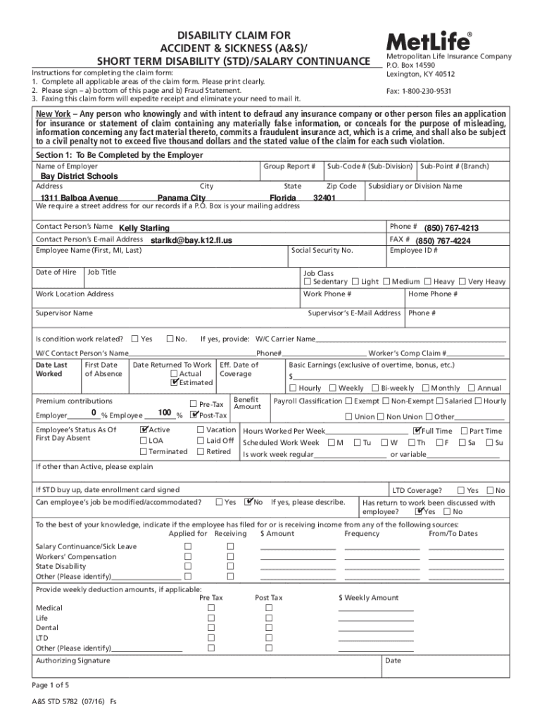 Get the free DISABILITY CLAIM FOR ACCIDENT & SICKNESS (A&S)/SHORT ...