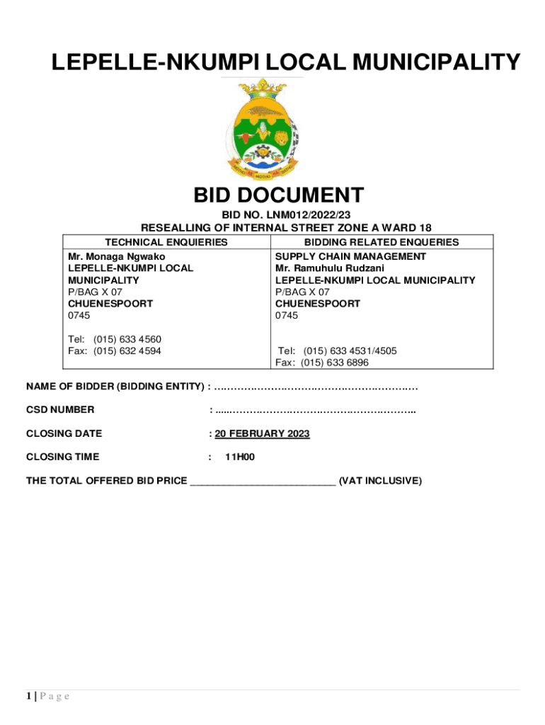 LEPELLENKUMPI LOCAL MUNICIPALITY BID DOCUMENT