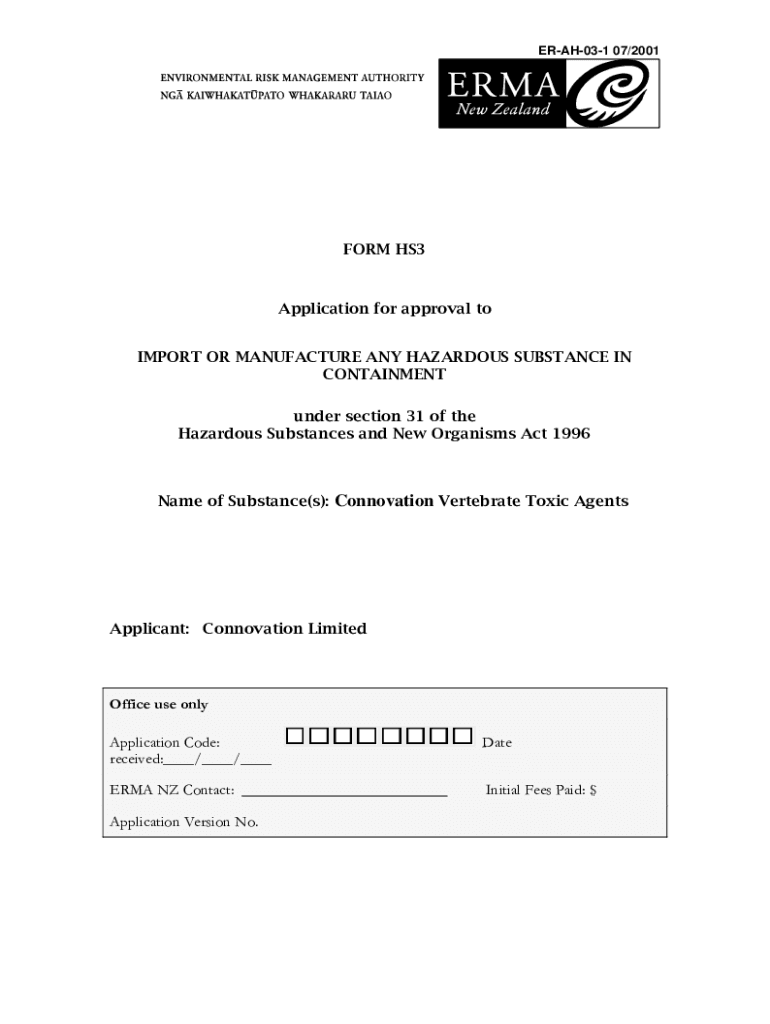 ERAH031 07/2001FORM HS3Application for approval to