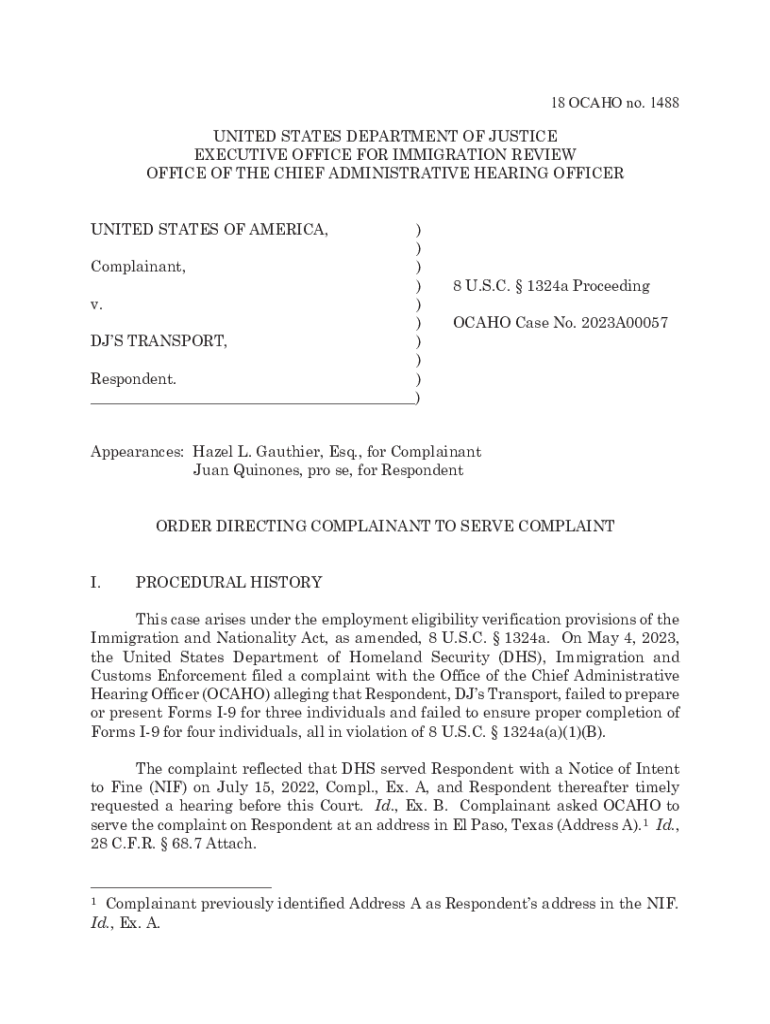 Get the free United States v. DJ's Transport. Order Directing Complainant to Serve Complaint