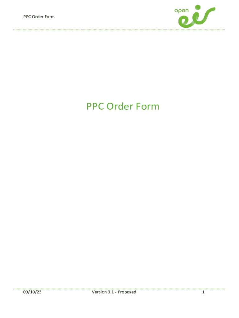 PPC Order Form PPC Order Form09/10/23Version 3.1 Proposed1PPC Order Conversion Control Version 1.1 V2.0StatusUpdateEffective DateFinal21/06/2017V3.0FinalV3.1ProposedThis document is based on V1.1