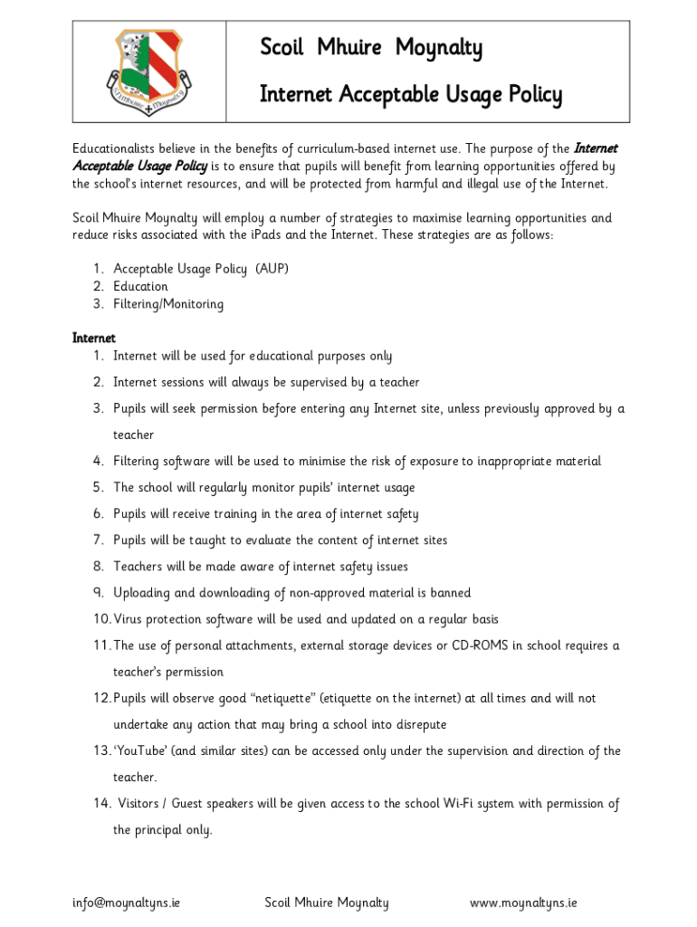 Soil Choose Loyalty Internet Acceptable Usage Policy Educationalists believe in the benefits of curriculum based internet use. The purpose of the Internet Acceptable Usage Policy is to ensure that