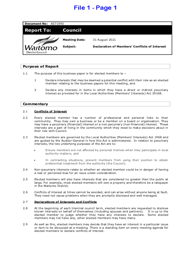 Get the free Declaration of Members Conflicts of Interest