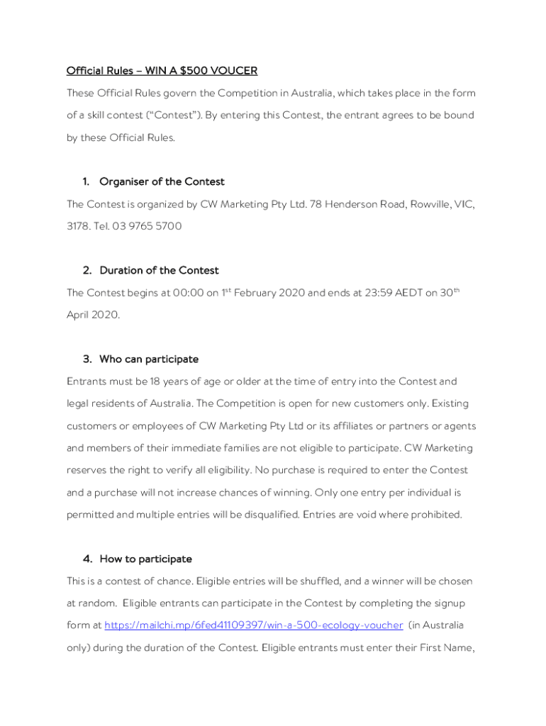 Official Rules WIN A $500 VOUCERThese Official Rules govern the Competition in Australia, which takes place in the form of a skill contest (Contest). By entering this Contest, the entrant agrees to