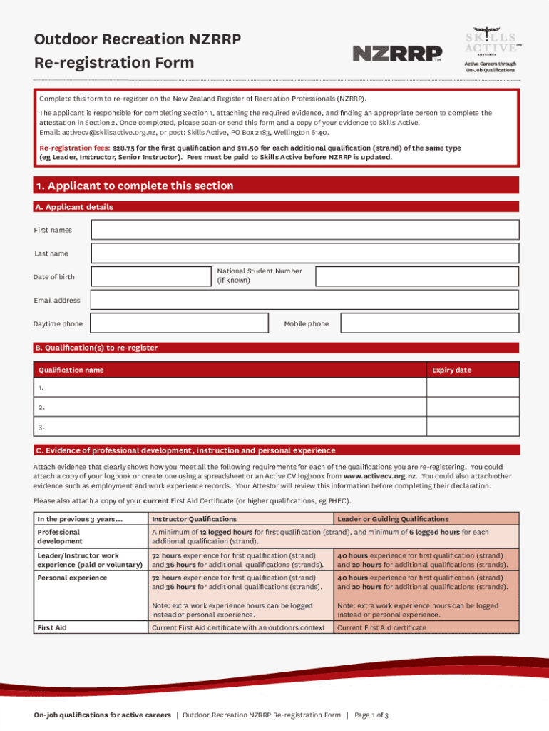 Complete this form to preregister on the New Zealand Register of Recreation Professionals (NRP).