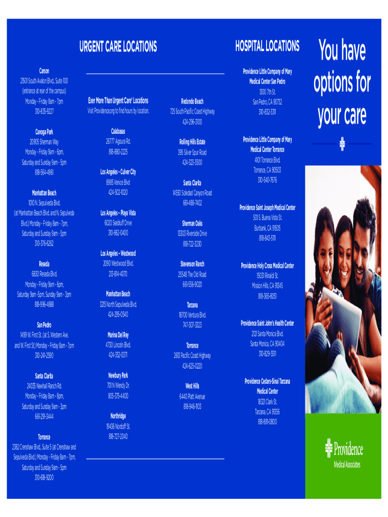 HOSPITAL LOCATIONSURGENT CARE LOCATIONS Carson 21501 South Avalon Blvd., Suite 100 (entrance at rear of the campus) Monday Friday 8am 7pm 3108359227 Canola Park 20905 Sherman Way Monday Friday 9am