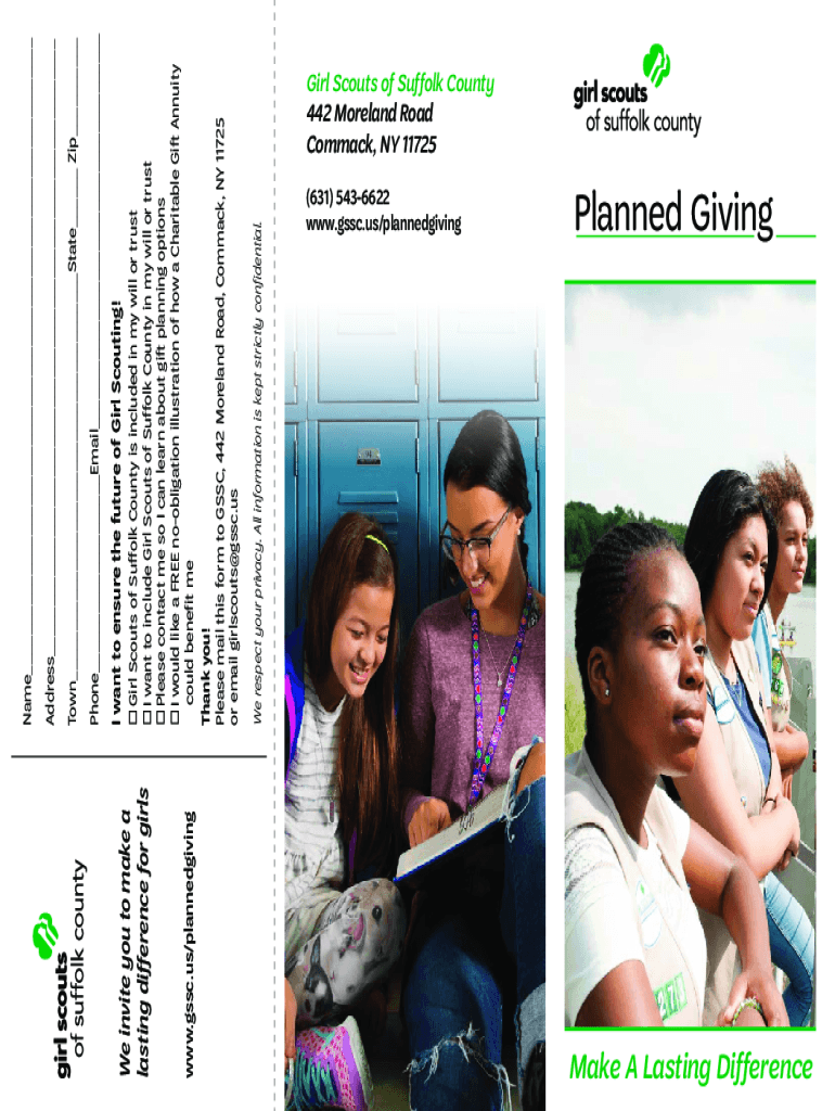Www.gssc.us/plannedgivingWe invite you to make a lasting difference for girls respect your privacy. All information is kept strictly confidential. Could benefit me, Thank you! Please mail this form