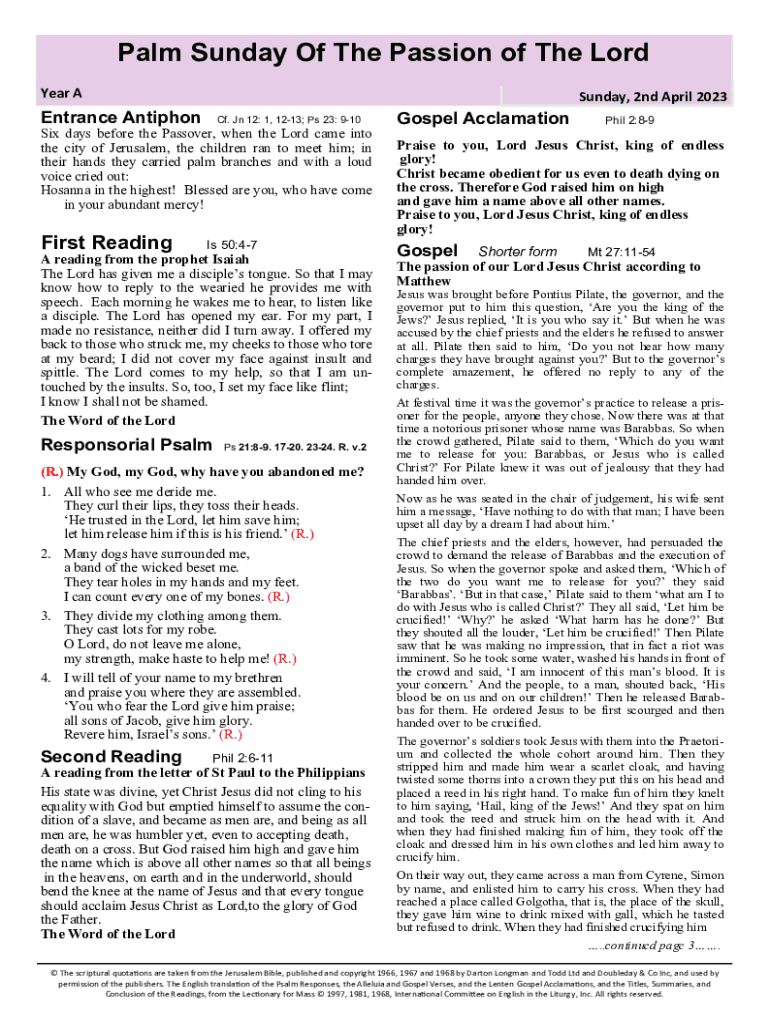 Fill out your palm sunday of form online with pdfFiller!