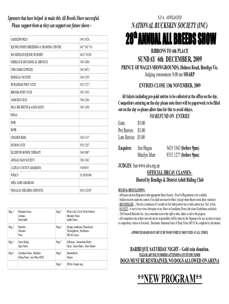 Sponsors that have helped to make this All Breeds Show successful. Please support them, so they can support our future shows E.F.A. AFFILIATEDNATIONAL BUCKSKIN SOCIETY (INC) th28 ANNUAL ALL BREEDS