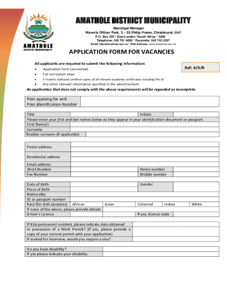 Get the free application form for vacancies