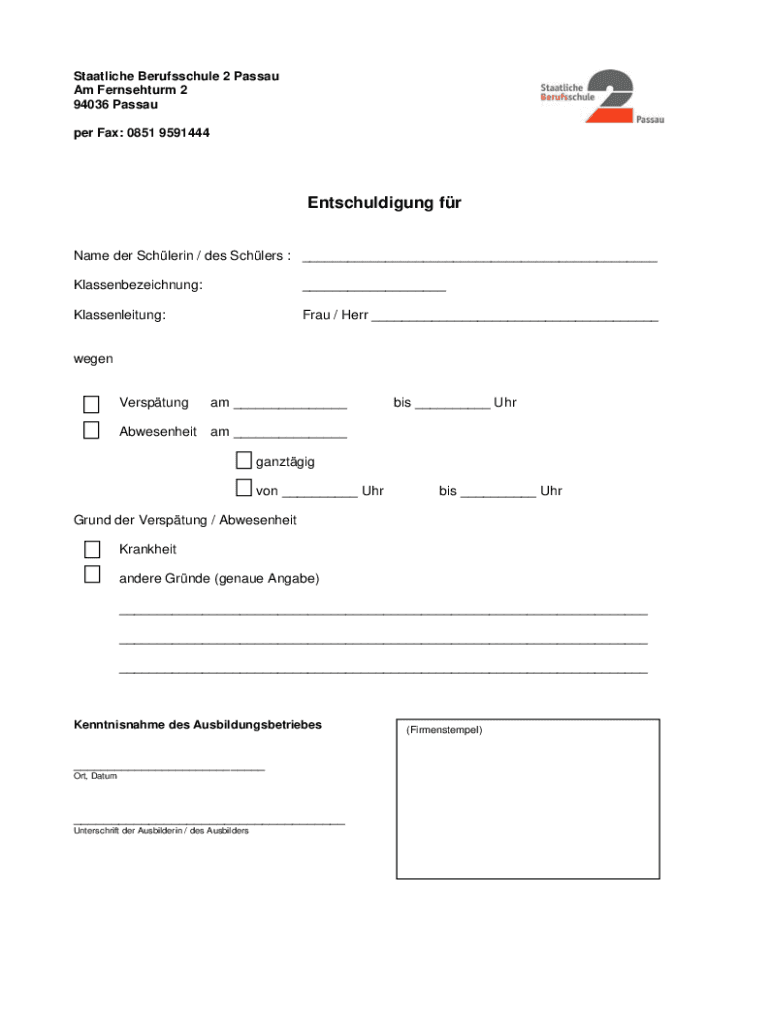 per Fax: 0851 9591444Entschuldigung for
