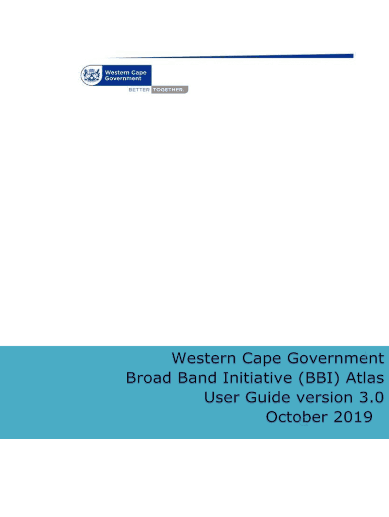 This is Version 3.0 of the Western Cape Governments Broad Band Initiative (BBI) Atlas user guide. This User Guide is available electronically as a PDF document on the Broad Band Atlas Web Map under