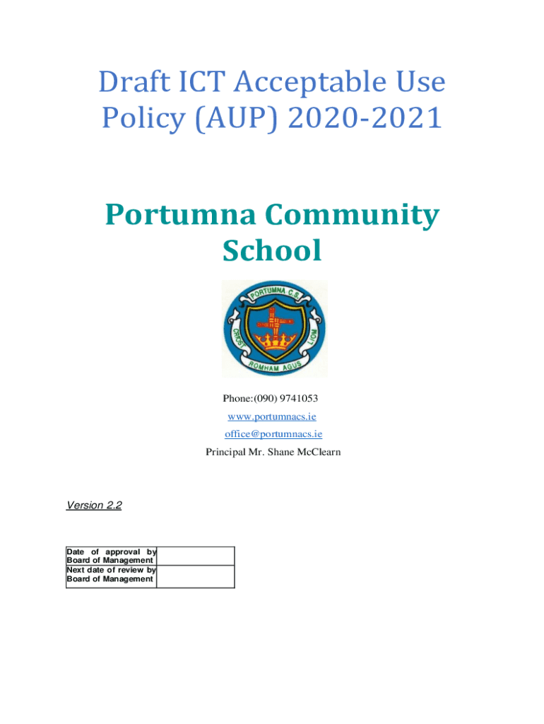 Start by reading the guidelines provided in the draft ICT acceptable use policy