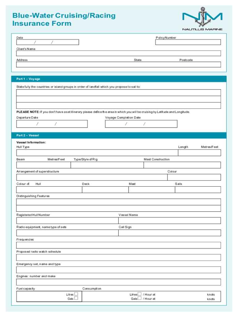Blue-Water Cruisingracing Insurance Form is not the form you're looking for?Search for another form here.