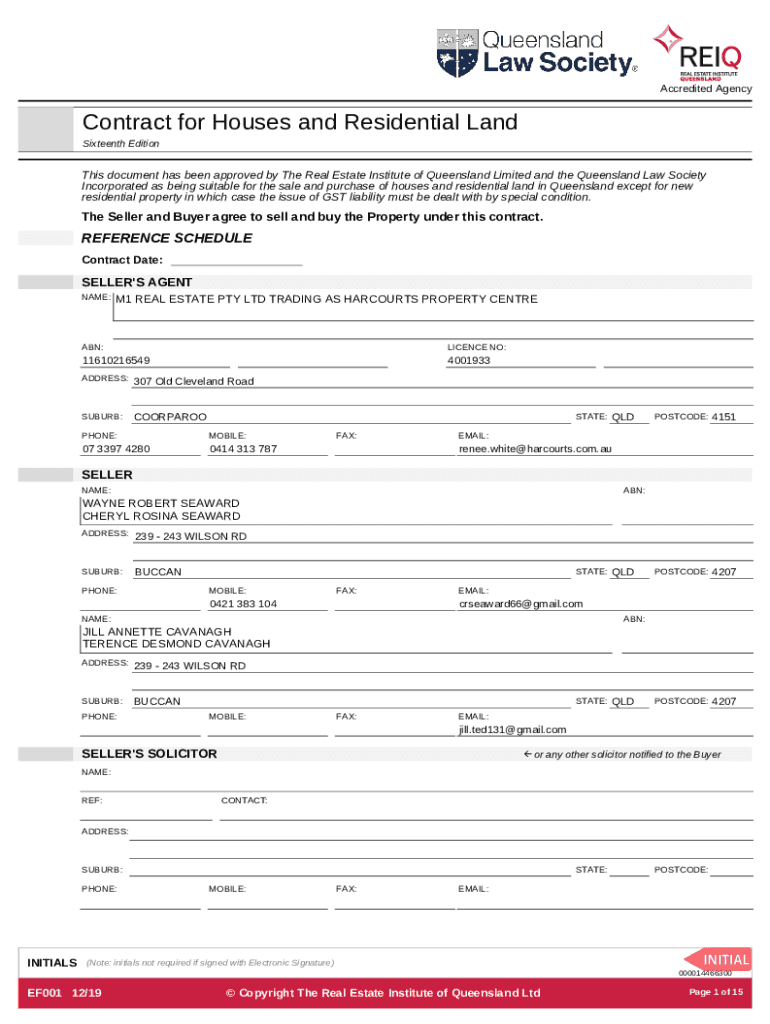 Sixteenth Editions document has been approved by The Real Estate Institute of Queensland Limited and the Queensland Law Society