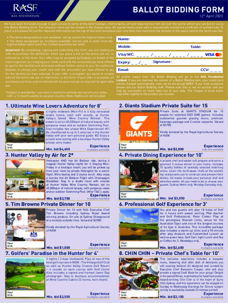 Get the free BALLOT BIDDING FORM