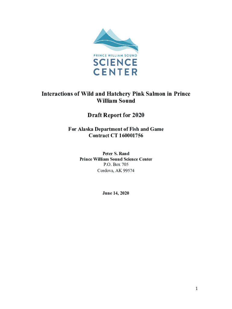 Interactions of Wild and Hatchery Pink Salmon in Prince William Sound Draft Report for 2020 For Alaska Department of Fish and Game Contract CT 160001756 Peter S. Rand Prince William Sound Science