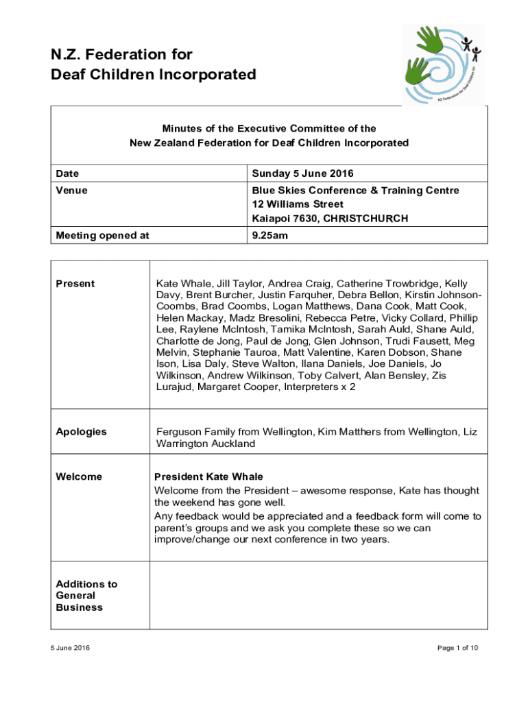 Deaf Children IncorporatedMinutes of the Executive Committee of the