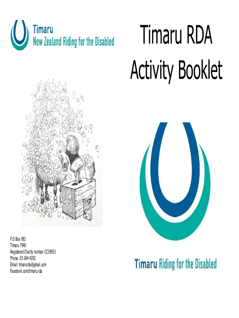 BIMARU RDA Activity Booklet. O Box 983 BIMARU 7940 Registered Charity number CC38933 Phone: 03 684 4282 Email: timarurda@gmail.com Facebook.com/timaru.rdaCan you find the following words in our Horse
