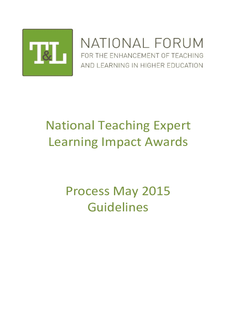 National Teaching Expert Learning Impact Awards Process May 2015 Guidelines national learning impact awards, coordinated through the National Forum, aim to support institutional efforts to promote,