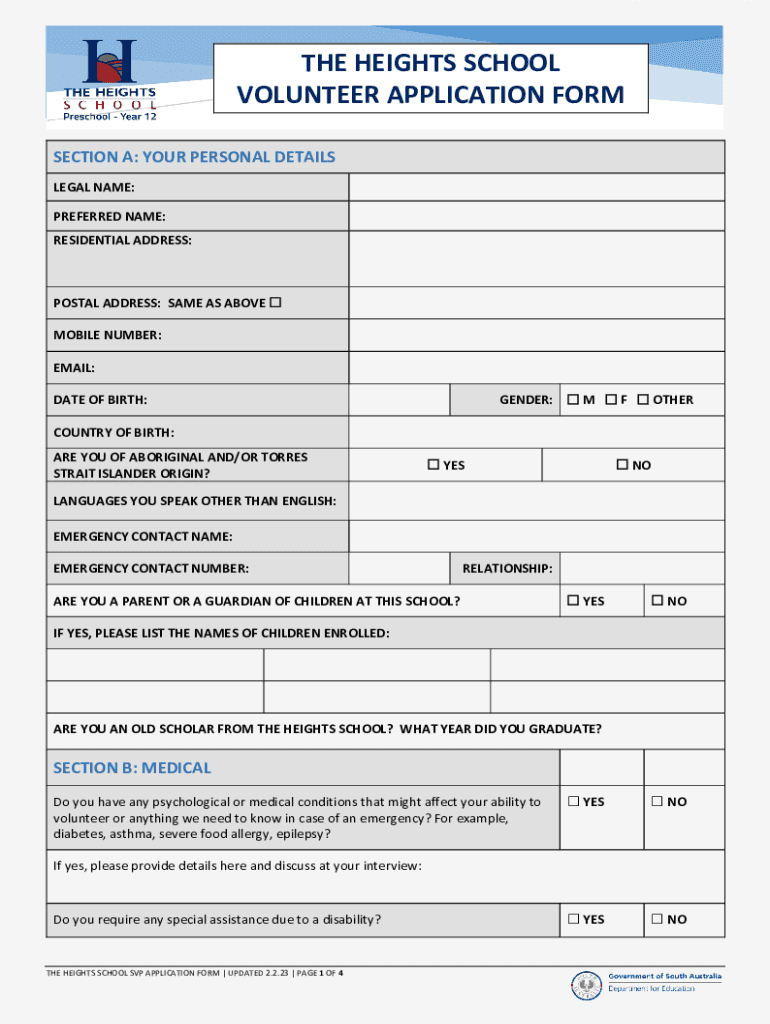 Get the free THE HEIGHTS SCHOOL VOLUNTEER APPLICATION FORM